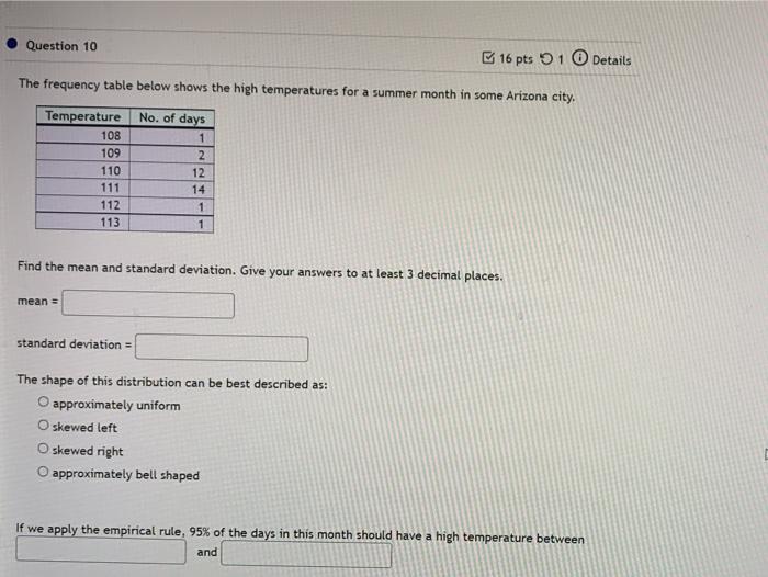 Solved Question 10 16 Pts 1 Details The Frequency Table Chegg Com