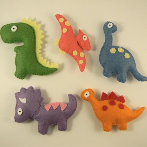Felt Dinosaurs Complete Set Of 3 Soft Toy Sculpture Sewing Etsy